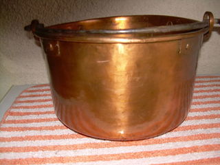 Chaudron cuivre , hauteur 21 cm , diamètre 32 cm .