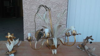 Très joli lustre à 5 branches et ses 2 appliques assorties en très bon état dans les tons de beige..30 euros l'ensemble