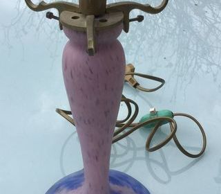 Pied de lampe à poser en pâte de verre de couleur rose et bleu. Pied de lampe made in France en verre soufflé à l'ancienne vendu avec son porte ampoule en laiton Dimension :