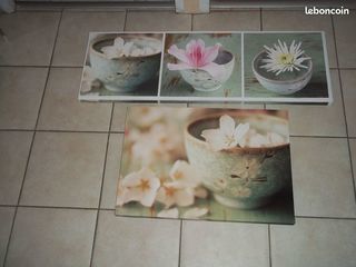 Un cadre de 105 cm x 35 cm tasse fleurs 20 euros Un cadre de 70 cm x 50 cm caillou fleur jaune 15 euros Un cadre de 65 cm x 45 cm tasse 15 euros Un cadre de 50 cm x 50 cm caill