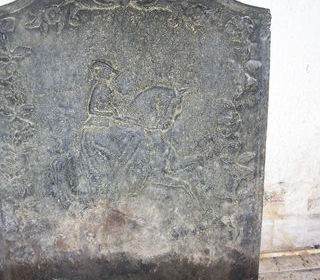 Plaque fonte de cheminée, décor cavalière , environ 30 Kg 55 x 60 cm épaisseur 3 cm environ . 40 €