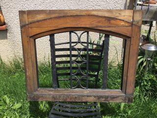 Ancienne fenêtre fixe décorative en bois avec son cadre et ferronnerie Dimensions Fenêtre : Hauteur 75 cm - Longueur 90 cm - Epaisseur 4.5 cm Dimensions Ferronnerie : Hauteur