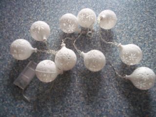 Cloches rouge qui s'allument avec les chants de Noel. Bouquet fibre (x 30), plusieurs couleurs. Longueur : 1,5 m de cordon électrique + 4,75 m de lumière. Boules blanches tro