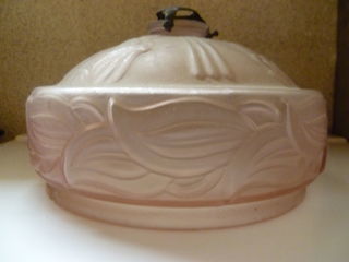 Ancien luminaire suspension en forme de coupe. Plafonnier en verre rose dépoli avec motifs A prendre sur place contact uniquement par téléphone