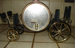 Description : Tonneau alimentaire pour tout type de boisson. Intérieur : ampoule en verre d'environ 1 litre. Bouchon en liège et robinet fonctionnel. Monté sur chariot à roues. A