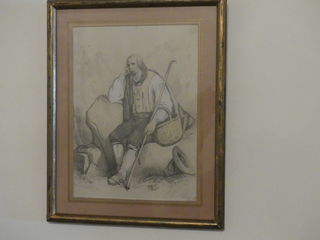 "Berger pyrénéen" dessin réhaussé gouache 24 x 18 cm à vue Monogramme P. A. daté 1843