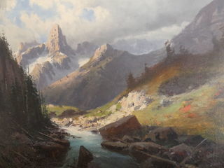 Alfred GODCHAUX (1835-1895) "Ossau et le Gave du Brousset" huile sur toile 73 x 100 cm cadre d'époque en bois stuqué et doré (un manque de moulure à gauche)