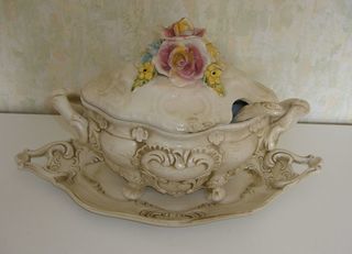 soupière décorative avec plateau et cuiller, très bon état tél 0981613549 ou 0681088006