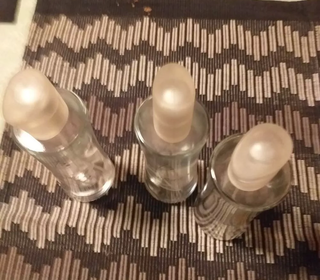 LOT DE 3 FLACONS VERRE AVEC BOUCHON NON RECHARGEABLES 2 marqués WOMEN 1 marqué BRILLANT GOLD CONTENANCE 75 ML MARQUE ANNA BIONDI