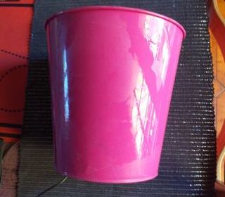 CACHE POT METALLIQUE COULEUR ROSE FUSCHIA DIAMETRE OUVERTURE 18 CM HAUTEUR 17 CM ASSISE 13 CM