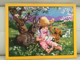Tableau en canevas fait main Cadre jaune Dimensions: hauteur 49 cm largeur 39 cm Apprendre sur place Paiement en espèces Possibilité d?envoi par mondial relay Les frais d?envoi