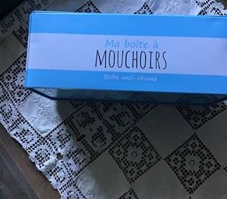 Boîte à mouchoirs métal bleu.