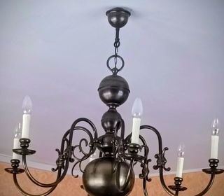 Suspension à barres 5 flammes abat-jour en textile - Neuf, jamais servi jamais posé. Barre 1 m - Câble 1.20 m. A prendre sur place Paiement en espèces uniquement