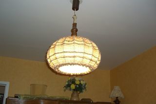 Suspension avec abat jour en tissu. Fonctionne comme en témoigne la photo.