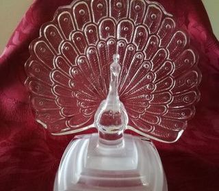 Bonjour vend ce sublime paon en cristal d'Arque , aux ailes déployées, socle en cristal givré, état neuf, il pourra être utilisé en bibliothèque, posé sur une table, console, bel