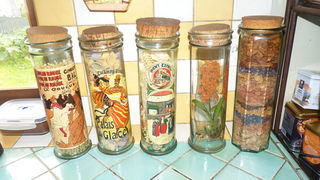 une dizaine de pot tous decorer de 30cm de haut et 12 cmde diametre