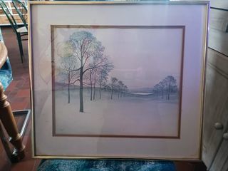 GRANDE LITHO PAYSAGE ALLÉE ARBRES 54 X 49 UNE SIGNATURE OU ABRÉVIATION EN BAS A GAUCHE MAIS ÉTANT NOVICE JE NE PEUX EN DIRE PLUS
