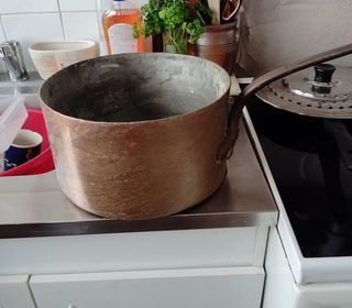 Vends grande casserole en cuivre bon état cuivre épais manche riveté