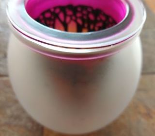 porte-bougie "Partylite" décor savane au crépuscule" Ht 11 cms TBE (objet de démonstration)