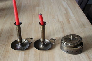 Vend : - 2 bougeoirs en laiton hauteur 20 cm diamètre socle 13 cm : 20,00 euros - 1 diffuseur de parfum en laiton ( pot pourri ) longueur 15 cm hauteur 8 cm : 10,00 euros