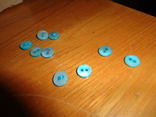9 BOUTONS couleur vert d'eau diamètre 1 cm environs (peuvent s'expédier sous enveloppe)