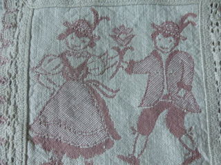 NAPPERON carré (21.5 cm) vieux rose avec 2 personnages