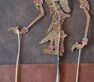 marionnette ombre chinoise indonésienne culte de Krishna Krisna marionnette gondolée avec le temps, bâtons en corne, corps en métal, bras en papier d'où une petite faiblesse à l