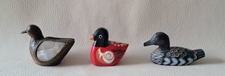 lot de 3 petits canards en bois peint à la main nacre et laiton canard noir et blanc 7x4,5 cm canard écailles et laiton 6x5,5 cm canard rouge 5x5 cm