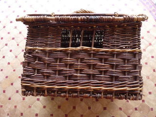 Panier en osier pour chat ou petit chien . Bon état général. Dimensions extérieures : Longueur 40cm, hauteur 30cm, profondeur 26cm Dimensions intérieures : Longueur 34cm , hau