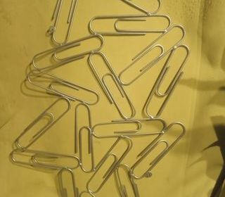 17 très grands trombones à fixer sur une surface plane, puis glisser, accrocher, des photos, des penses-betes,...60cmX40cm. Protégeons notre planète, consommant notre production sa