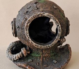 décor décoration d'aquarium casque de scaphandre en résine neuf 12x12 cm environ diamètre de l'ouverture à l'avant 6 cm scaphandrier aquarophilie poisson