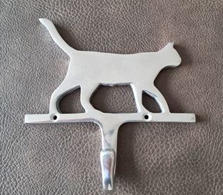 crochet pour habit porte manteau éventuellement porté clé en métal surmonté d'un chat petites rayures d'usage 12,5x12,5 cm