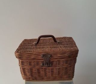 Panier en osier vintage avec poignée et fermoir, longueur 28 cm, largeur 17 cm et hauteur 16 cm. Très pratique et décoratif..
