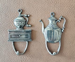 lot de 2 attaches torchon en métal moulin à café et cafetière l'adhésif à l'arrière à vieilli etest à changer moulin à café: 8x4 cm cafetière: 7,5x4,5 cm