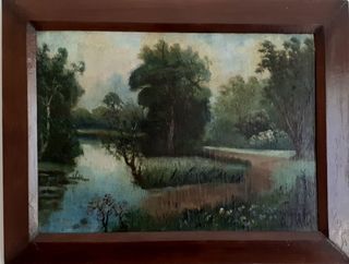 Peinture sur bois "dans son jus", à restaurer , années 1900 sur paysage de la campagne autour de Gatchina en Russie.dimensions 70x53. Remise en main propre car très vieux et frag