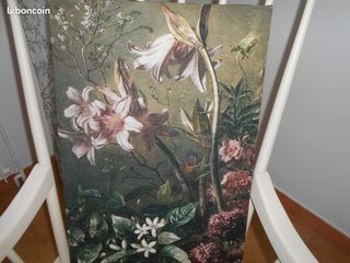 TABLEAU FLORAL effet tapisserie DIMENSIONS 40X60 avec accroche au dos couleur dominante vert