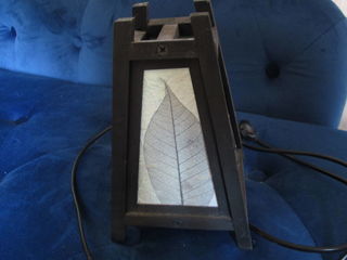 Lampe diffusant une lumière d'ambiance douce et tamisée. Fonctionne comme un photophore avec des parois qui laissent filtrer une lumière légère. Les montants sont en bois de couleu