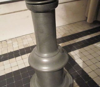 Ancien pied de lampe en étain. Pas de poinçon visible. Col et base un peu déformés. Bon état général Hauteur : 21 cm Poids 840g IMPORTANT : - A venir chercher sur pla