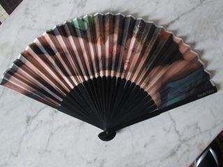 Eventail reproduction de tableau représentant des anges, issu du musée Fabre Longueur de l'éventail replié : 23 cm Neuf dans son emballage, sorti pour la photo.