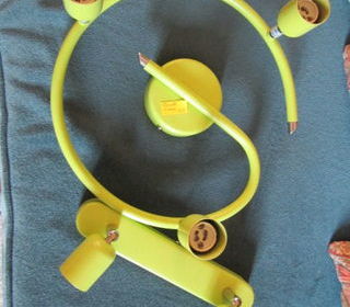 Ensemble assorti comprenant l'ensemble de 3 lampes de plafond et une applique murale à 2 lampes. Couleur verte. Photos supplémentaires à la demande. Parfait état. IMPORTANT :