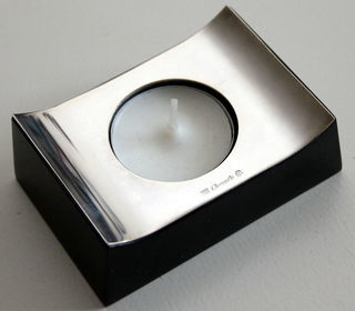 Bougeoir à thé votif CHRISTOFLE D'après la description internet, la base noire est en bois inspiration orientale longueur 9 cm hauteur max 3 cm bougie chauffe plat jamais ut