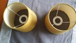 vends 2 abats jour en tissu de coloris vert. Hauteur 13 cm. Circonférence 11 cm et 14 cm.