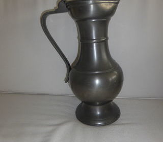 Vends 1 pichet et 1 soupière en étain grand pichet avec couvercle orné de glands étain 94 % hauteur 26 cm poids 950 gr 25 € soupière avec couvercle étain fin 92 % haute