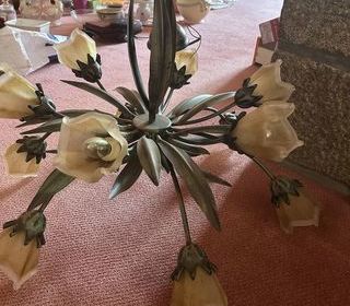 Superbe paire de lustres, un grand et un plus petit. Soit les 2 soit individuels. Fer et verre.