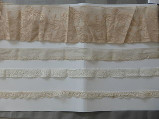 plusieurs dentelles anciennes (bien d'autres modèles, photos sur demande) différents métrages non lavées pour réalisation de couture, restauration de costumes, décoration ....