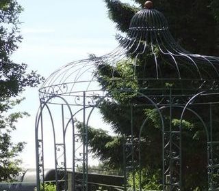 très jolie tonnelle neuve ,copie d un modèle ancien ,330 cm de diamètre, facile a monter, les éléments décoratifs sont en fer plein ,les feuilles du décor en fonte et le cadre en t