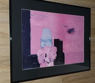 Tableau avec peinture sous verre 82 x 62 Système d'accroche à l'arrière Signature Cathelin A remettre en main propre