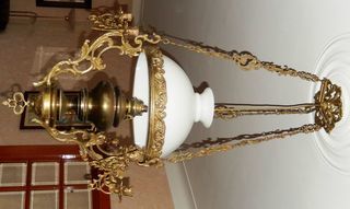 2 magnifique luminaire suspendu en pocelaine et cuivre, bel ouvrage , 3 branches , le tout en parfait état de marche. de 100 à 150€ pièce