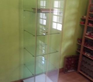 Vitrine en verre 1 m76 de haut Coté :0.48 4 étagères en verre Petite brisure en bas dans un coin sur une face A démonter sur place