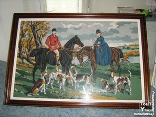 VENDS DEUX TABLEAUX RUSTIQUES FORME CANEVAS . - CHASSE A COURRE - DIM : L; 102CM - l; 70CM -PRIX UNITAIRE -80€ -SOUS-BOIS AVEC CERFS - DIM : L; 54CM - l; 43CM -PRIX UNIT